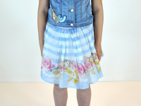 Голубую жилетку сшили из мягкого дышащего хлопка, который хорошо держит форму за счет добавления эластичных волокон. Модель украсили вышивкой в виде подводного мира и цветов, выполненной шелковистыми нитками и пуговицами по всей длине.